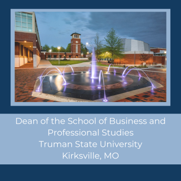 Truman State University seeks a strategic and innovative administrative professional to serve as the next Dean of the School of Business and Professional Studies. The new Dean will be a confident leader with a positive attitude, strong communication skills, and a collaborative spirit.