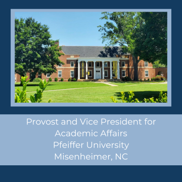 Pfeiffer University invites nominations and applications for the position of Provost and Vice President for Academic Affairs. As a member of the President’s Cabinet, the Pfeiffer University Provost and Vice President for Academic Affairs oversees the work of the deans of both the undergraduate and graduate colleges, and provides oversight and guidance for the four academic divisions as Pfeiffer executes its mission on campuses in Misenheimer, Charlotte, and Albemarle (Center for Health Sciences).